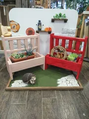 ベンチ型プランター♫ 本日午前レッド午後ピンクのミルクペイント追加して作りました♫午前も午後も楽しかったです☺ありがとうございました♫♫