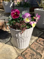 パンジーとクローバー♣️の寄せ植え パンジー2種とエンジェルクローバーマジカルの寄せ植えを作りましたクローバーが可愛いです😊