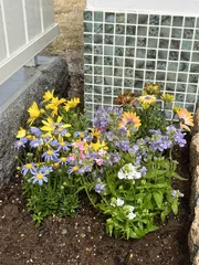 花の苗を植えました 先日カインズさんで買ってきたディモルフォセカとマスカレードとフェリシティとネメシアの苗を植えました。センスが無いのでどう植えたら良いのかわかりませんでした。とりあえず来る方の心がほっこりしてくれればと思います。