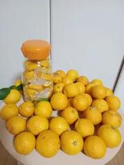 ぼとぼと落ちた柚子のジュース!!! 昨日からの強風で庭の柚子がぼとぼと落ちた😱もったいないので、ずーっと作らなきゃ😣と思っていた柚子ジュースようやく作りました🫡 氷砂糖が足らなくなったので、残りは、明日職場で皆さんにおすそ分けです🤲