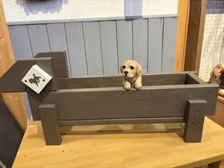 前から作りたかったドックプランターを作りました ショコラブラウンで塗装して耳はバニラでわんわん祭りのステンシルをしました