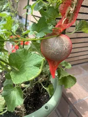メロンの実が大きくなりません ■育てた野菜 メロン■工夫ポイント 鉢で育てているメロン🍈、今年は実が大きくなりません💦ネット系のメロンところたんを育てていますがどちらも未だにゲンコツくらいの大きさです 雨に当たるといけないので夕方になると玄関先にとり込んでいます 今年は収穫は諦めて観賞用となってます😊自然相手だと色々あるんです