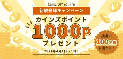 【終了】春の新規登録キャンペーン開催! ※本キャンペーンは終了しました※この度、カインズのコミュニティサイトCainz DIY Squareでは春の新規登録ポイントキャンペーンを開催いたします!新規でご登録&投稿していただいた方の中から抽選で100名様にカインズポイント1,000Pをプレゼントいたします!【キャンペーン期間】202