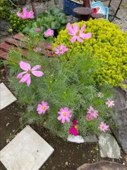 早咲きコスモス二景 4月上旬に種蒔きしたコスモス畑が花盛りです。2枚目は、2/25投稿の「仮設花壇の設置」(リンク→ https://diy-square.cainz.com/announcements/7kjyjikerc4x1q4s)での様子です。