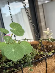 今頃目が覚めたの? 春先に満開に咲いてくれたナスタチューム何色の花を咲かせるんだろか? オレンジ色だったら嬉しいな