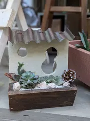 お家型プランターに寄せ植え✨ 午前中に作ったプランターに、午後からは多肉ちゃんの寄せ植えです🎵 ちょっとロックガーデン風に仕上がって、またお気に入りができました✨