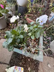 寄せ植え3️⃣ 一鉢でいいお値段でしたが苗がポットに二つ入りだったので🤭四角い鉢に植えてみましたが写真撮るのは難しいですね💦また少ししか咲いてません。どんなブルーが出て来るか楽しみです😌