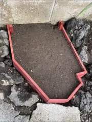 5/14投稿「雨に濡れるニゲラ」(リンク→ https://diy-square.cainz.com/announcements/bzvyfclfopjggh3f )の跡地の整備です。岩で囲んで土盛りしてただけのミニ花壇、水捌けも良くないと思われるので、ニゲラ解体を待って作り直しました。サイズを決め