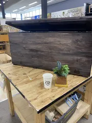 姉と一緒にワークショップに参加してローリングストック収納棚を作りました色は悩みましたがキッチン用のメイプル姉も同じ色でおそろっち🎵今日も乾燥を待つ間においしいコーヒーをいただき一息。