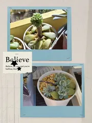 茎だけにした多肉植物のその後♪ 黒ずんできたりして不調が見られたら、まずはベニカXファインスプレーをシュシュってしてますが、ちょっとコレは。。。ってなってしまったら、思い切って茎だけにします🤭画像の上は茎(親株)も葉挿しも元気になりました♪画像の下は茎(親株)は枯れちゃいました💧が、葉挿しから新しい芽が出て、ちっちゃいコが育ってま