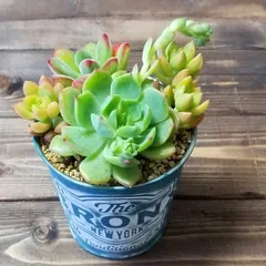 多肉寄せ植え放題😃もしかしたら、あの多肉屋さんかしら❣️こうのすフラワーマーケット、これはワクワクしますね😆🎶 次回、多肉の出店がある時に是非とも行ってみたいです🥰 Tagさんの寄せ植え、可愛らしいですね💕スリット入りで、上から溢れたような雰囲気の寄せ植えも素敵です✨ブルー系⁉︎の多肉初めてみました