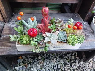 少し前に多肉寄せ植え教室に行ってきました😊💗✌️今回は、真ん中に赤色の『火祭り』を入れて冬の焚き火のイメージで❤️相変わらずバランスよく入れるのが難しい😅💦講師の先生の手直しで完成🎶数日間経過したら『あれっ❓️形が😂直したけど微妙🤔』まだまだ修行中😆