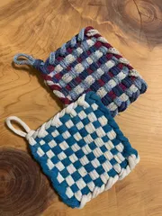 近所の公民館で教えていただき作った靴下の端切れのコースターです生産工程で不要になる靴下のつま先部分の輪っかの端切れで作られてます🧦捨てられてしまう物がこんな可愛く生まれ変わって素晴らしいですよね✨