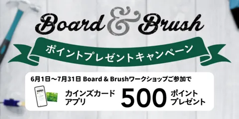 みなさま、こんにちは!CAINZ DIY Square運営担当です😊Board & Brushワークショップのキャンペーン開催のご案内です📢 \ポイントプレゼントキャンペーン/ 2023年6月1日(木) ~ 7月31日(月)の期間中Board & B