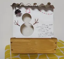 おうち型多肉プランター アレンジ✨ ステンシルして、季節外れの雪だるまにしました~。 ご一緒したひまわりさん、見てくれるかしら~?