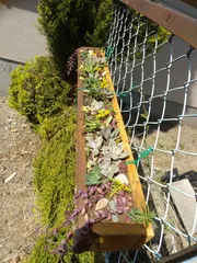 ボランティア花壇に多肉のプランター ボランティアで作業させていただいている場所です。 (例の、さつまいも畑になった…) フェンスに多肉を飾る許可https://diy-square.cainz.com/announcements/jfqrldcccmp7kqjdは、いただいているので、今日のお昼、炎天下で作業しまし