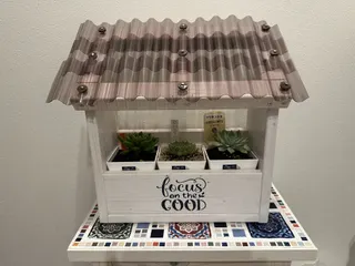 波板を使ったプランター 波板を取り付けるのは初めてで少し難しかったですが無事に完成しました家に帰ってからステンシルをしてシンデレラフィットしたプラ鉢に多肉団地で買った格安の多肉ちゃんたちを植えてみました
