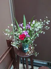 庭のお花で 種から育てたかすみ草https://diy-square.cainz.com/announcements/ijh6v0s42fbxuxstおおきくなって倒れそうなので早々に切り花にしました😆赤いカーネーションは母の日のサービスで知り合いのお店の方に一本いただきました。あと、シランと一緒に生けました。