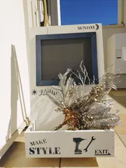 黒板付きフラワースタンド 北本店で作成。ステンシルも入れて10時〜14時くらいまで。 定員4名でしたが、速攻枠が埋まりました。 スタンバイしてたのに既に予約が入っていて焦りました〜。 無事作れて嬉しいです。 後ろ足の片方が浮いてます。そういえばガタツキ見ておくの忘れました。片方だけすこ