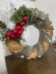 リースの本体がパンなのですね🥐?!パンを作った日?なのかしらと思ってしまいました。 パンの表面がすごいですね。😉