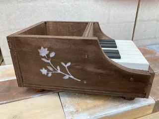 ピアノ型プランターカバー 久しぶりのワークショップで🎹作って来ました♪アンティーク調のピアノにしたかったのでピアノ本体は超撥水のブラウンステンシルは新色のソフトピンクにしました🎹 どの色塗っても素敵💓なピアノ。また違う色でも作ってみたいかも。