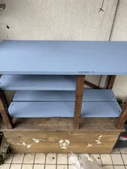 アイアン調テレビラック 2台目のテレビラックです 天板はパリジャンブルーで塗装しました スタッフさんが作業工程を変更してくれたのでスムーズに進みましたありがとうございました😊
