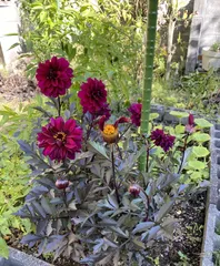 昨年秋のお買い得苗から 昨年の秋、花が終わって枝をカットしたダリアの苗を買いました。ダークリーフだったので。すぐに地植えにして、冬を越し、こんなに元気に咲いてくれました😊夏の間は花が少なめでしたが、秋になり元気を取り戻してます。嬉しい☺️!名前はダラヤミーナアルナという名前です。実際の葉はもう少し濃い色です。いい買い物で