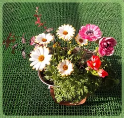 お花の寄せ植え🌼🌿 カインズのGWSで使用されていた、可愛い籠の鉢が欲しかったので、嬉しい寄せ植えとなりました🎶