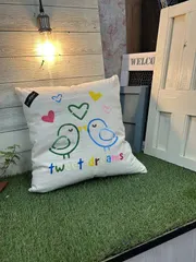 クッションカバー クッションカバーを作って来ました。仕上がったとおもったら、くちばしを忘れ、慌ててステンシルをしたら、少し汚してしまいました😅そのままの方が良かったかな⁉️楽しく作る事が出来ました🎶スタッフさん、ききさん、ありがとうございました❤️
