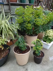 昨年挿し木したユーフォルビアマーチニーを昨日株分けしました。https://diy-square.cainz.com/announcements/pwb0nfrtsz88lpa6 左が親株 右が挿し木 2本入れていたので鉢がパンパンでした。右の挿し木のほうを分けました。一つは花もカット 小