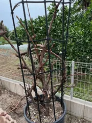 どこに植えようかと鉢植えのまま放置して3年目のぶどう(マスカット系)…今年の夏は暑くて何もできずお隣りまでツルを延ばしてしまいました。虫も見えなくなったある日思いきり切ってみたら、切り口から水💦がポタポタと…鉢を突き抜けて地中まで根っこをはりめぐらせていたのには、びっくり‼️45 Lゴミ袋7袋分枝切