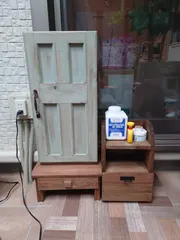 先日作ったドアキャビネットを 収納棚として使いたかったので、アレンジしました。以前wsで作った(旦那作)引き出し付きステップの上に1✕4を挟みその上にドアキャビネットを固定しました。扉にはローラーキャッチをつけて勝手に開かないようにしました。せっかく作った引き出し付きステップでしたが ずっしりとして