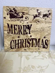 四角いOSB端材11枚あったので残りでステンシルコースターみたく一個一個ステンシルしてみて皆さんの投稿みたく枠を作って飾ろうかとやってみましたが、この合板だと可愛くなかったんです。合体させて1枚ものに堂々とステンシルしないと様にならないような気がして、裏返してちと早いけどクリスマスバージョンをチョコ