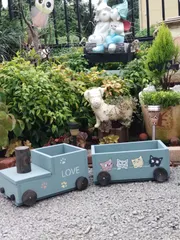 汽車型プランターカバー 2作目、大好きな(=^・^=)チャンのステンシルしました。朝早く起床してデザインナイフで型紙カット、試行錯誤しながら半日がかりで仕上げました!この作品はお外飾り用なので邪魔にならずにいくつあってもいいかもですね😉❣️