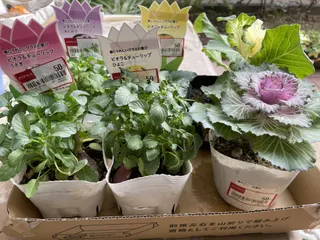 ビオラの後に、チューリップ🌷が咲く✌️というお得なポット!なんと、クリアランスで、50円👍思わず、一緒に買い物していたおともだちと、ゲット‼️葉牡丹も、50円‼️忙しい年末だけど、なるべく早めに植え替えてあげたいと思ってます✌️