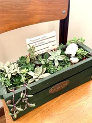 どりい さま コメントありがとうございます😊 私も自己流で作った寄せ植えがバラバラと隙間だらけになってしまったので一度きちんとやり方を知りたいと思い参加してみました。 ぎゅっと植え込んでいったあとに、ほんの少しの隙間でもセダムなどをピンセットで植え込んでいくと何とか形になりました。まだまだ学ぶことは