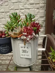 多肉寄せ植え リメ缶に多肉の寄せ植えしました😊💕✌️一応、リメ缶のイメージに合わせて😄🎶バランスって難しいですね😅💦このスクエアの方々の作品見て、勉強してます🍀