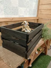 ウッドコンテナ ウッドコンテナを作ってきました。主人に車の送迎をお願いしたので、制限時間1時間で作成しました🤣 巻き巻きで作業😓エボニーブラックです😊半年前2個作成したので今回で3個目😆前回は持ち帰ってワトコオイルとvintageWaxのウォルナット色で塗り比べをしたけど今回はブラックで😎ご一緒した皆さんと短い時間