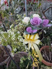 可愛い葉牡丹を買ってきたので、wsで使ったアンブレラに寄せ植えしてみました リボンをつけて少し華やかになったかな?