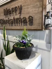 本日の午後はMyストアでクリスマスの寄せ植えを作りました🎄鉢がとっても素敵で小物作り❔も楽しかったです😍枯らさないように頑張ってお手入れしようと思います💕