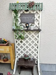 捨てなきゃ…ラティス カインズで4000円位したのになぁ💦 Seria100円のインコ🦜2羽つけたら屋根も欲しくなり、これまたSeriaの塗料で塗ってみた✨屋根下にはソーラーライトを掛けてみました。夜は、ほんのり灯りが✨ボロボロだったのに生き返りました🤣補強したり塗装したり、植物を飾ったり……ラティス持って