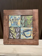 ステンシルコースターの、枠を作りました✌️ ステンシルコースターの枠を作りました。WSの後、スタッフさんに枠の作り方を相談すると、工房の目の前のカット材で、できる!と。ベニヤ板も含めて150円!見本は、丸棒で、支えを作ってあったのですが、サイズ合わせで切った残りを使って、支えを作りました✌️