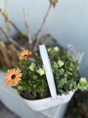 植え替え講座に参加して 名古屋みなと店の植え替え講座でキク科のオステオスペルマム(アキラ)とフェリシア(ブルーデージー)とシソ科のオレガノと組み合わせました。暖かくなり満開になるのが楽しみです。