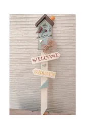 【ガーデン サイン ピック】② WS作品【ガーデン サイン ピック】2本目をプレゼント用に自宅にてアレンジさせて頂きました🎨自宅用と殆ど同じですが屋根部分の釘やアルミ屋根などは打たず煙突モドキで自宅にあった木材をお子ちゃまの安全に配慮して飾りました🏠⬇️ 自宅用【ガーデン サイン ピック】