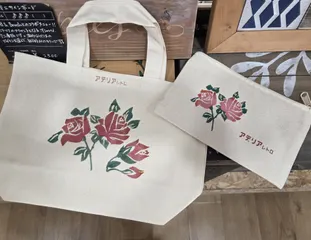 アデリアレトロ🌹 ■作品内容アデリアレトロのマスカレード🌹トートバッグとポーチ作りました■こだわりポイントグラデーションにしようと作りたい色をアドバイザーさんに相談し混ぜる色を教えていただきました混ぜる色はまさかの青🔵でしたおかげでレトロピンクの素敵なポーチができました🥰トートバッグも同じように色の配合したつもりでし