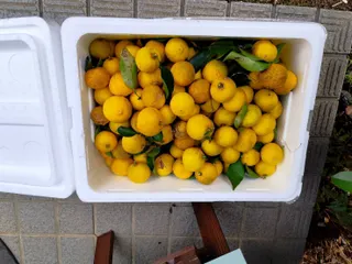 我が家の柚子 たった1本の木から200〜300個位採れるのでこれの3倍は収穫できました。が、こんなには必要ないのでお好きにどうぞと道路に置くと午前中に無くなります。私もジャム位は作りたいなと思ってたらここにも載せてる人がいて上手にできてましたので参考にしたいです🍊