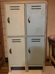 ロッカー風チェスト ずっと作りたかったロッカー風チェスト、ようやく予定が空いて作ることができました😊主人は超撥水サンドグリーン、私は新色グレージュで仕上げてみました💕2つ目作りに来られてた方がグレージュよかったとおっしゃっていたので真似っこしてみました🩶 作業は単純なのだろうけど大物すぎて色塗るのも疲れました