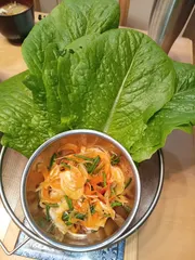 庭の野菜でサムギョプサル!! 家庭菜園で育てたロメインレタスとワケギを使って、今日はサムギョプサルにしました!!!レタス🥬うまっ!!!😆🩷