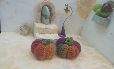 カボチャの置物 寒くなってくると編み物🧶したくなる 毛糸はダイソーで買いました猫の妨害に合いながら🐈️➰➰🧶毛糸で編んで作りました