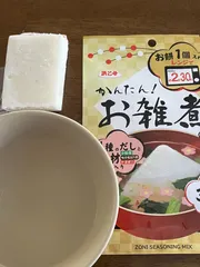 今日は一人ランチだったので前から食べてみたいなと思っていたのをやってみました 年末にたくさんお餅をついたのでそれを使ってレンジでお雑煮を作ることです 以前買い物に行った時にこの「お雑煮の素」をみつけました 耐熱容器にお餅と水150ml、そしてお雑煮の素を入れます レンジで2分38秒温めて出来上がりで